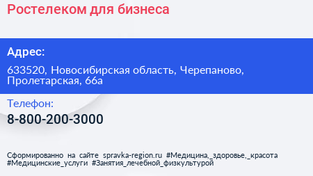 Ростелеком для бизнеса по адресу 633520, Новосибирская область, Черепаново, Пролетарская, 66а в дальнейшем Организация, размещена в следующих категориях: