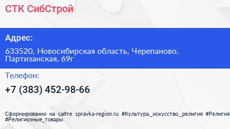 СТК СибСтрой по адресу 633520, Новосибирская область, Черепаново, Партизанская, 69г в дальнейшем Организация, размещена в следующих категориях: