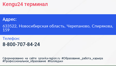 Kengu24, терминал по адресу 633522, Новосибирская область, Черепаново, Спирякова, 159 в дальнейшем Организация, размещена в следующих категориях: