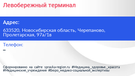 Левобережный, терминал по адресу 633520, Новосибирская область, Черепаново, Пролетарская, 97а/1в в дальнейшем Организация, размещена в следующих категориях: