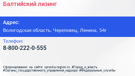 Балтийский лизинг по адресу Вологодская область, Череповец, Ленина, 54г в дальнейшем Организация, размещена в следующих категориях: