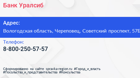 Банк Уралсиб по адресу Вологодская область, Череповец, Советский проспект, 57Б в дальнейшем Организация, размещена в следующих категориях: