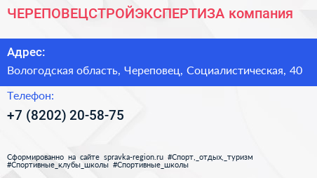 ЧЕРЕПОВЕЦСТРОЙЭКСПЕРТИЗА, компания по адресу Вологодская область, Череповец, Социалистическая, 40 в дальнейшем Организация, размещена в следующих категориях: