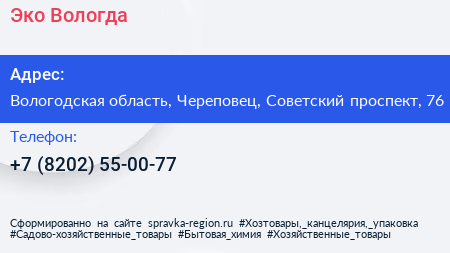 Эко Вологда по адресу Вологодская область, Череповец, Советский проспект, 76 в дальнейшем Организация, размещена в следующих категориях: