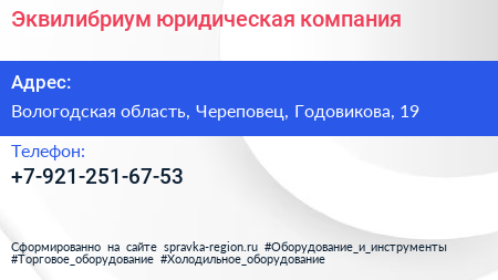 Эквилибриум, юридическая компания по адресу Вологодская область, Череповец, Годовикова, 19 в дальнейшем Организация, размещена в следующих категориях: