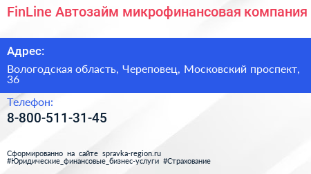 FinLine-Автозайм, микрофинансовая компания по адресу Вологодская область, Череповец, Московский проспект, 36 в дальнейшем Организация, размещена в следующих категориях: