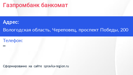 Газпромбанк, банкомат по адресу Вологодская область, Череповец, проспект Победы, 200 в дальнейшем Организация, размещена в следующих категориях: