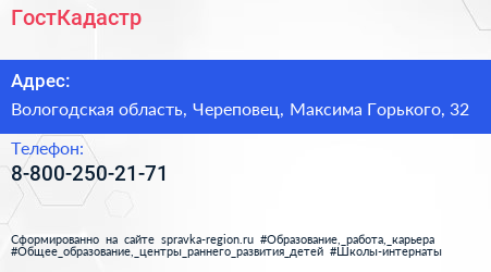 ГостКадастр по адресу Вологодская область, Череповец, Максима Горького, 32 в дальнейшем Организация, размещена в следующих категориях: