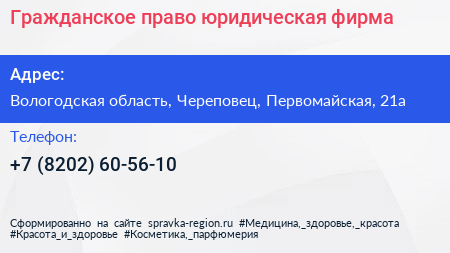 Гражданское право, юридическая фирма по адресу Вологодская область, Череповец, Первомайская, 21а в дальнейшем Организация, размещена в следующих категориях: