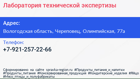 Лаборатория технической экспертизы по адресу Вологодская область, Череповец, Олимпийская, 77а в дальнейшем Организация, размещена в следующих категориях: