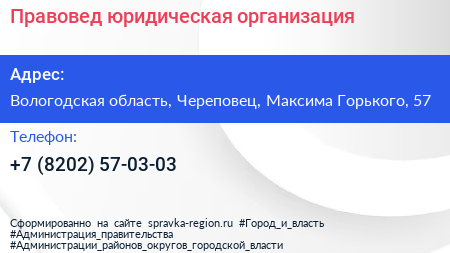 Правовед, юридическая организация по адресу Вологодская область, Череповец, Максима Горького, 57 в дальнейшем Организация, размещена в следующих категориях: