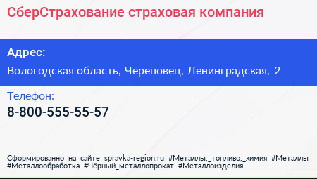 СберСтрахование, страховая компания по адресу Вологодская область, Череповец, Ленинградская, 2 в дальнейшем Организация, размещена в следующих категориях: