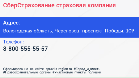 СберСтрахование, страховая компания по адресу Вологодская область, Череповец, проспект Победы, 109 в дальнейшем Организация, размещена в следующих категориях: