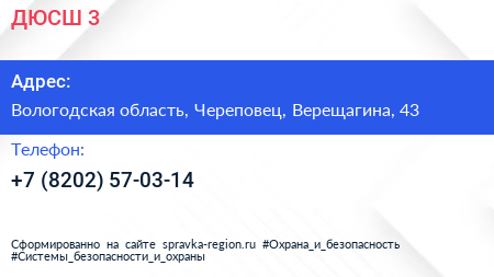 ДЮСШ №3 по адресу Вологодская область, Череповец, Верещагина, 43 в дальнейшем Организация, размещена в следующих категориях: