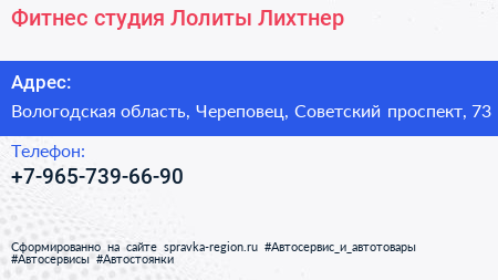 Фитнес-студия Лолиты Лихтнер по адресу Вологодская область, Череповец, Советский проспект, 73 в дальнейшем Организация, размещена в следующих категориях: