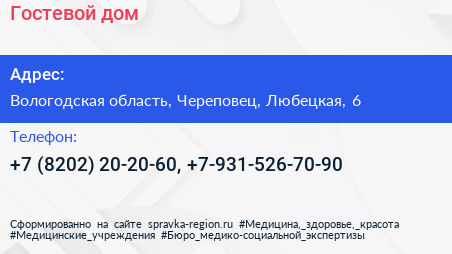 Гостевой дом по адресу Вологодская область, Череповец, Любецкая, 6 в дальнейшем Организация, размещена в следующих категориях: