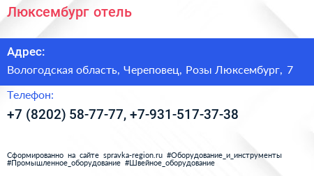 Люксембург, отель по адресу Вологодская область, Череповец, Розы Люксембург, 7 в дальнейшем Организация, размещена в следующих категориях: