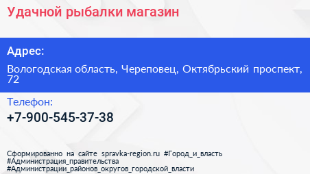Удачной рыбалки, магазин по адресу Вологодская область, Череповец, Октябрьский проспект, 72 в дальнейшем Организация, размещена в следующих категориях: