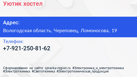 Уютик, хостел по адресу Вологодская область, Череповец, Ломоносова, 19 в дальнейшем Организация, размещена в следующих категориях: