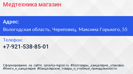 Медтехника, магазин по адресу Вологодская область, Череповец, Максима Горького, 55 в дальнейшем Организация, размещена в следующих категориях: