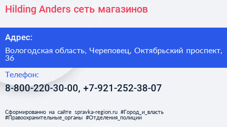 Hilding Anders, сеть магазинов по адресу Вологодская область, Череповец, Октябрьский проспект, 36 в дальнейшем Организация, размещена в следующих категориях: