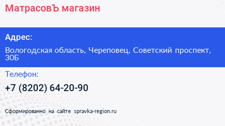 MатрасовЪ, магазин по адресу Вологодская область, Череповец, Советский проспект, 30Б в дальнейшем Организация, размещена в следующих категориях: