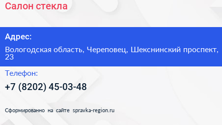 Салон стекла по адресу Вологодская область, Череповец, Шекснинский проспект, 23 в дальнейшем Организация, размещена в следующих категориях: