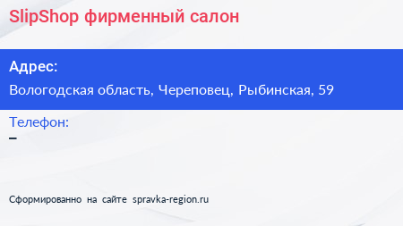 SlipShop, фирменный салон по адресу Вологодская область, Череповец, Рыбинская, 59 в дальнейшем Организация, размещена в следующих категориях: