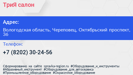 ТриЯ, салон по адресу Вологодская область, Череповец, Октябрьский проспект, 36 в дальнейшем Организация, размещена в следующих категориях: