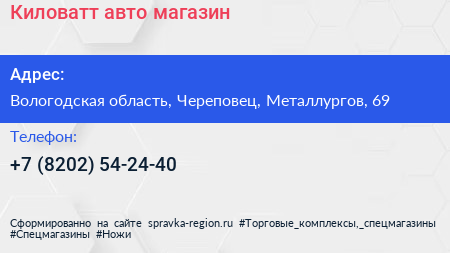 Киловатт-авто, магазин по адресу Вологодская область, Череповец, Металлургов, 69 в дальнейшем Организация, размещена в следующих категориях: