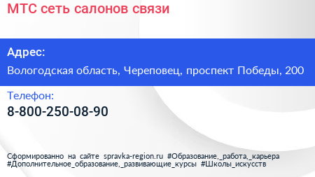 МТС, сеть салонов связи по адресу Вологодская область, Череповец, проспект Победы, 200 в дальнейшем Организация, размещена в следующих категориях: