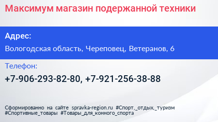 Максимум, магазин подержанной техники по адресу Вологодская область, Череповец, Ветеранов, 6 в дальнейшем Организация, размещена в следующих категориях: