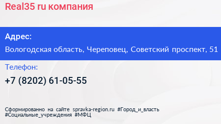 Real35.ru, компания по адресу Вологодская область, Череповец, Советский проспект, 51 в дальнейшем Организация, размещена в следующих категориях: