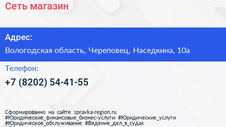 Сеть, магазин по адресу Вологодская область, Череповец, Наседкина, 10а в дальнейшем Организация, размещена в следующих категориях: