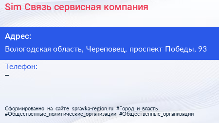 Sim Связь, сервисная компания по адресу Вологодская область, Череповец, проспект Победы, 93 в дальнейшем Организация, размещена в следующих категориях: