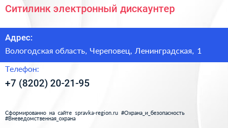 Ситилинк, электронный дискаунтер по адресу Вологодская область, Череповец, Ленинградская, 1 в дальнейшем Организация, размещена в следующих категориях: