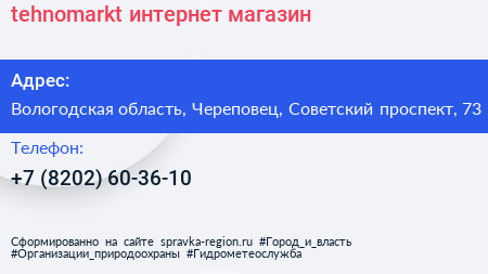 tehnomarkt, интернет-магазин по адресу Вологодская область, Череповец, Советский проспект, 73 в дальнейшем Организация, размещена в следующих категориях: