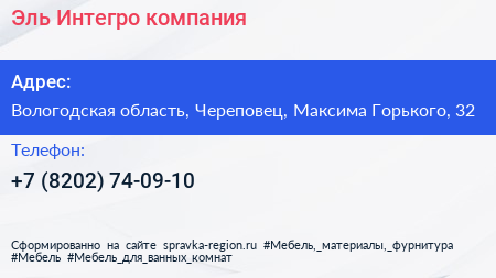 Эль Интегро, компания по адресу Вологодская область, Череповец, Максима Горького, 32 в дальнейшем Организация, размещена в следующих категориях: