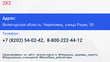 2Х2 по адресу Вологодская область, Череповец, улица Раахе, 50 в дальнейшем Организация, размещена в следующих категориях: