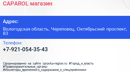 CAPAROL, магазин по адресу Вологодская область, Череповец, Октябрьский проспект, 83 в дальнейшем Организация, размещена в следующих категориях: