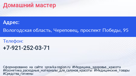Домашний мастер по адресу Вологодская область, Череповец, проспект Победы, 95 в дальнейшем Организация, размещена в следующих категориях: