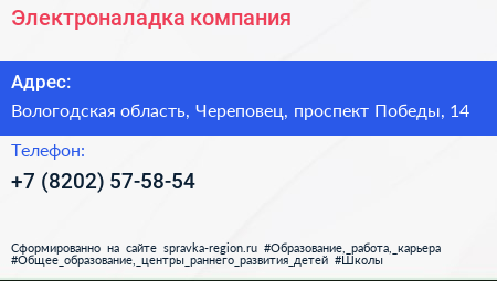 Электроналадка, компания по адресу Вологодская область, Череповец, проспект Победы, 14 в дальнейшем Организация, размещена в следующих категориях: