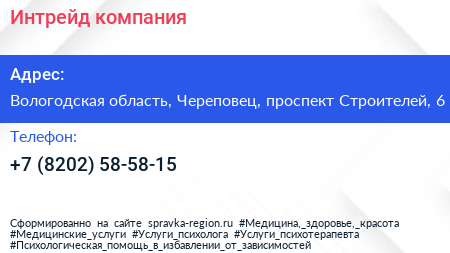 Интрейд, компания по адресу Вологодская область, Череповец, проспект Строителей, 6 в дальнейшем Организация, размещена в следующих категориях: