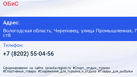 ОБиС по адресу Вологодская область, Череповец, улица Промышленная, 7 ст8 в дальнейшем Организация, размещена в следующих категориях: