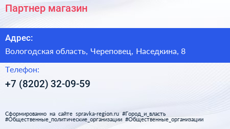 Партнер, магазин по адресу Вологодская область, Череповец, Наседкина, 8 в дальнейшем Организация, размещена в следующих категориях: