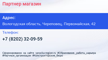 Партнер, магазин по адресу Вологодская область, Череповец, Первомайская, 42 в дальнейшем Организация, размещена в следующих категориях: