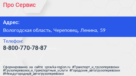 Про-Сервис по адресу Вологодская область, Череповец, Ленина, 59 в дальнейшем Организация, размещена в следующих категориях: