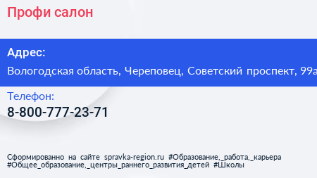 Профи, салон по адресу Вологодская область, Череповец, Советский проспект, 99а в дальнейшем Организация, размещена в следующих категориях: