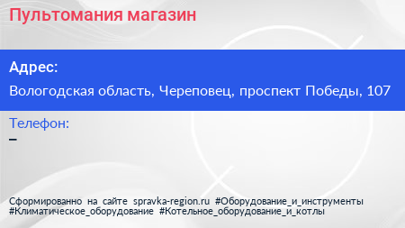 Пультомания, магазин по адресу Вологодская область, Череповец, проспект Победы, 107 в дальнейшем Организация, размещена в следующих категориях: