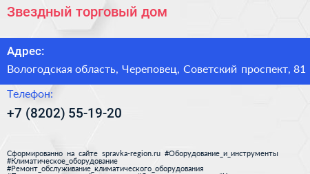 Звездный, торговый дом по адресу Вологодская область, Череповец, Советский проспект, 81 в дальнейшем Организация, размещена в следующих категориях: